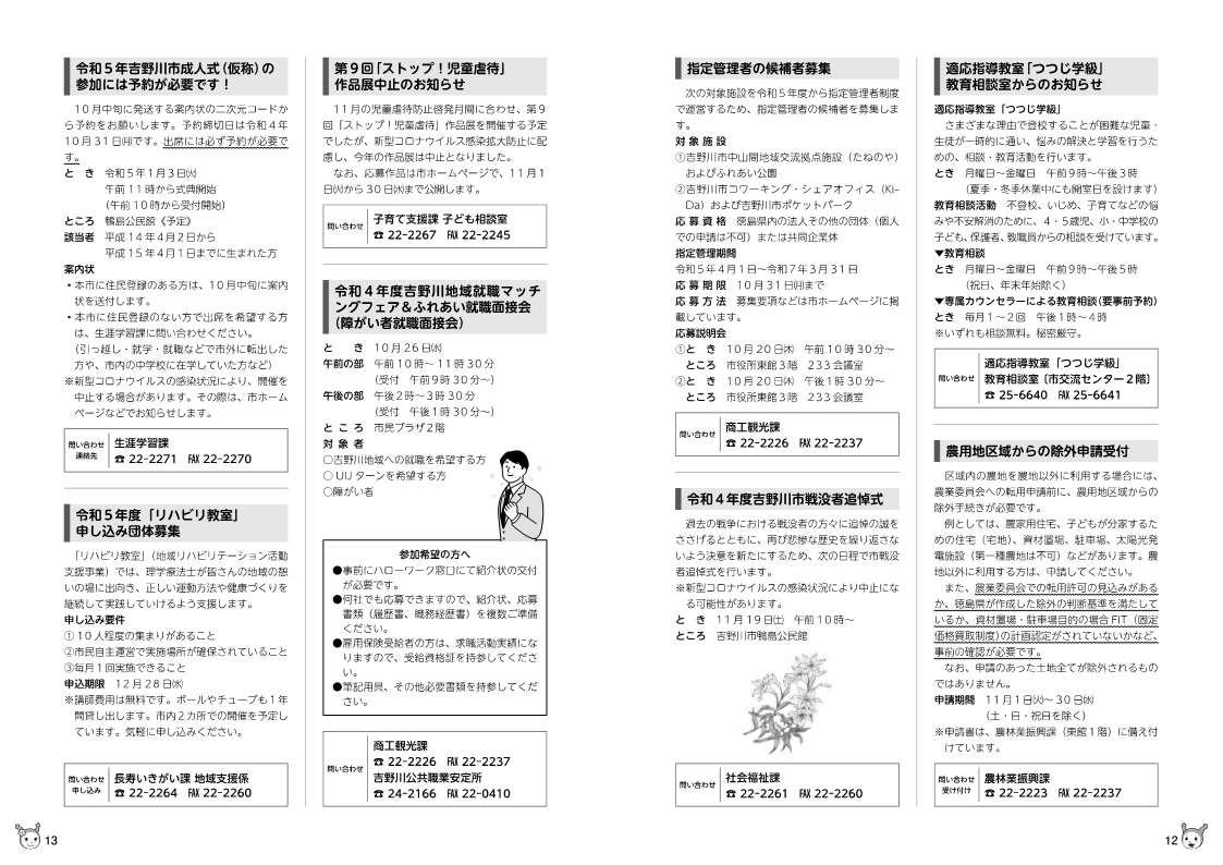 市民の皆さんに市政情報やできごとなどをお知らせする「広報よしのがわ」を毎月発行しています。