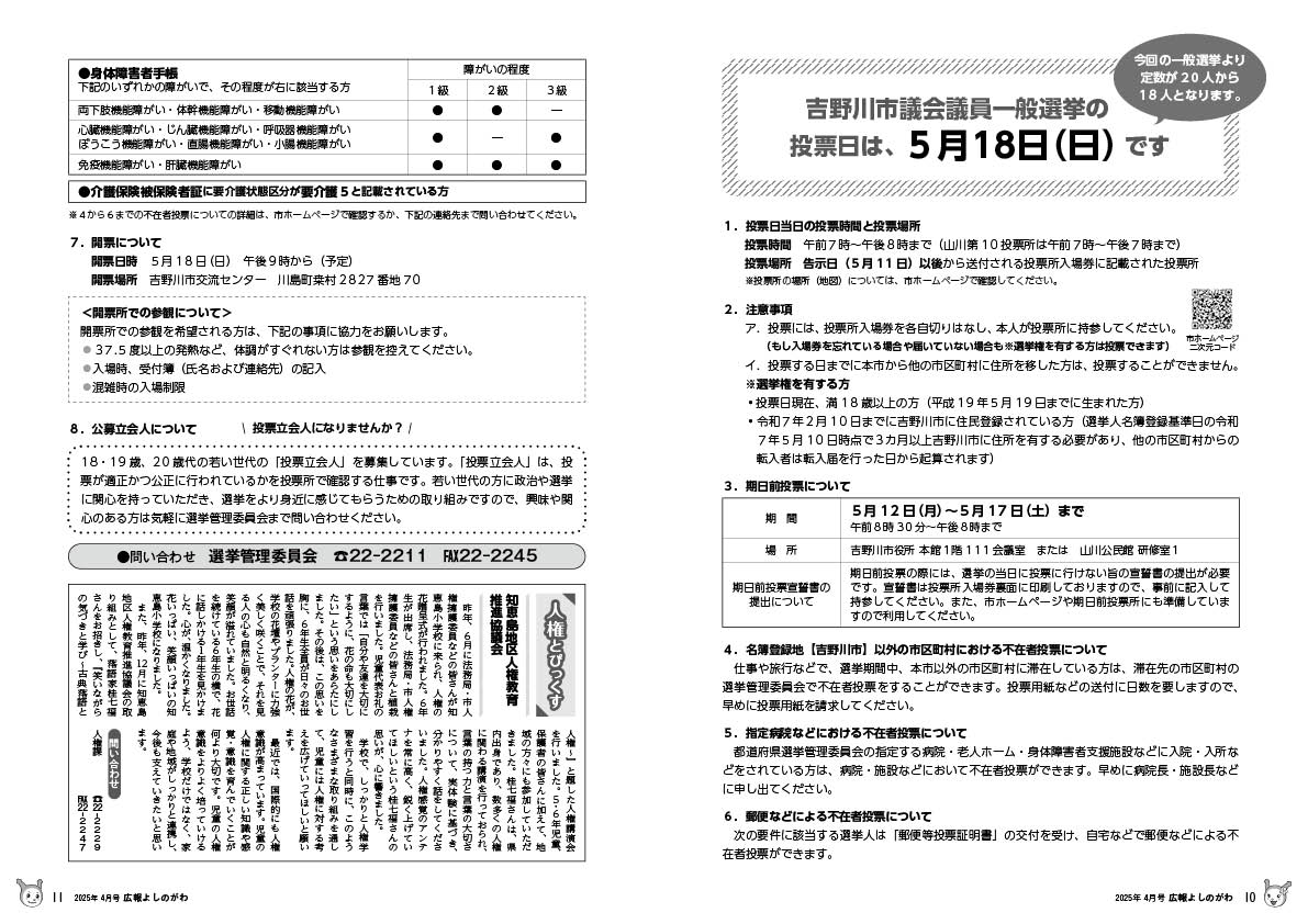 市民の皆さんに市政情報やできごとなどをお知らせする「広報よしのがわ」を毎月発行しています。