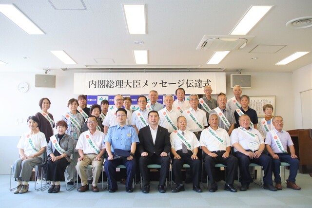 | 7月1日、市内の更生保護団体を代表して保護司会が市役所にて内閣総理大臣メッセージ伝達式を行い、その後市内巡回啓発活動を行いました。 この取り組みは、犯罪や非行の防止と罪を犯した人たちの更生について理解を深め、犯罪のない地域社会を築くことを目的に行っています。 |