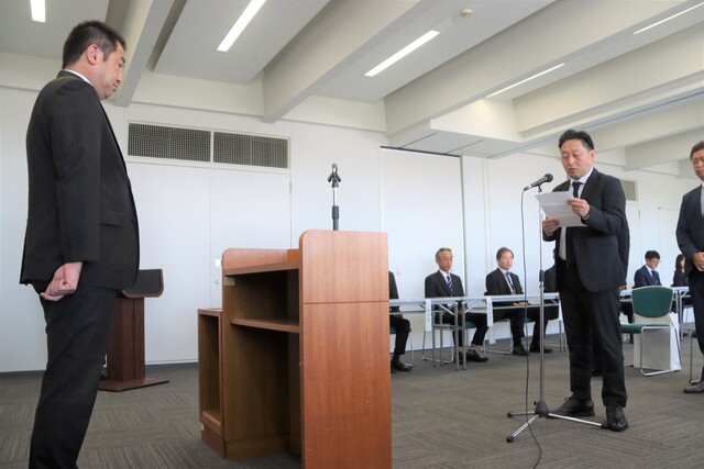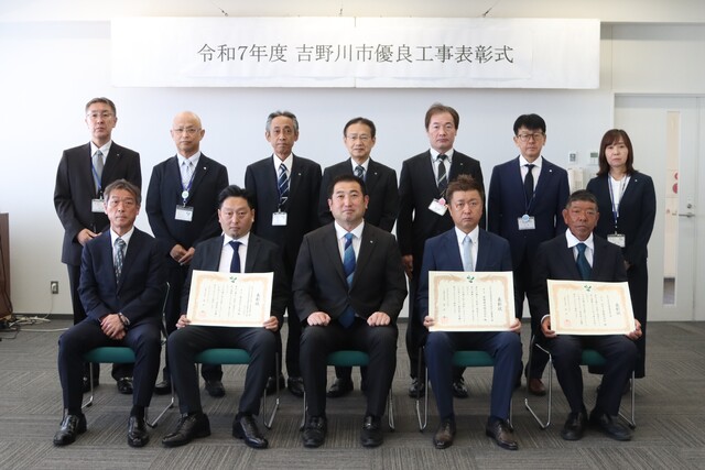 7月24日、令和6年度に竣工検査した対象工事63件のうち、優秀な成績で完成した工事4件(3社)を表彰しました。 表彰された業者は次の通りです。 |