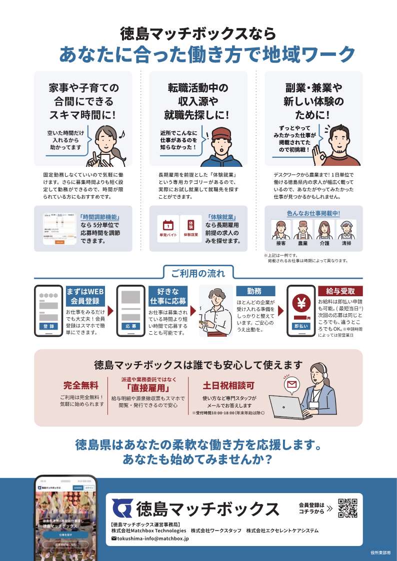 徳島県と徳島マッチボックス運営事務局による、県内における多様な働き方や人材活用を推進する新たな仕組み「徳島マッチボックス」をご案内いたします。