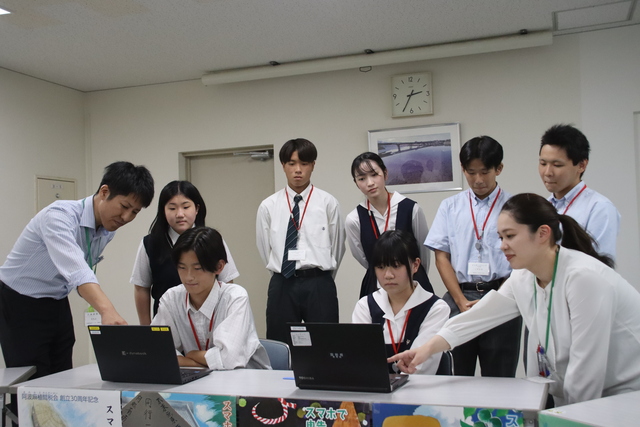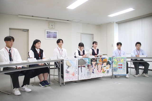 8月21日、22日、川島税務署にて、吉野川高校・川島高校・阿波高校・阿波西高校の2年生計8名がインターシップに参加し、国税電子申告・納税システム(e-Tax)を使った申告書作成などを学びました。また、最終日に行われた模擬記者発表では、「スマートフォンを利用した確定申告」をテーマに発表し、実際の新聞記者との質疑応答を体験しました。参加した生徒からは「いままで税とはあまり関わりはなかったが、インターンを通して興味を持つことができ、良い経験になった」と感想が述べられました。 |