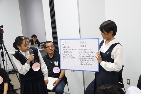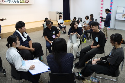 おとな代表の市長、市議会議長、教育長らとともに座談会形式で意見交換がおこ