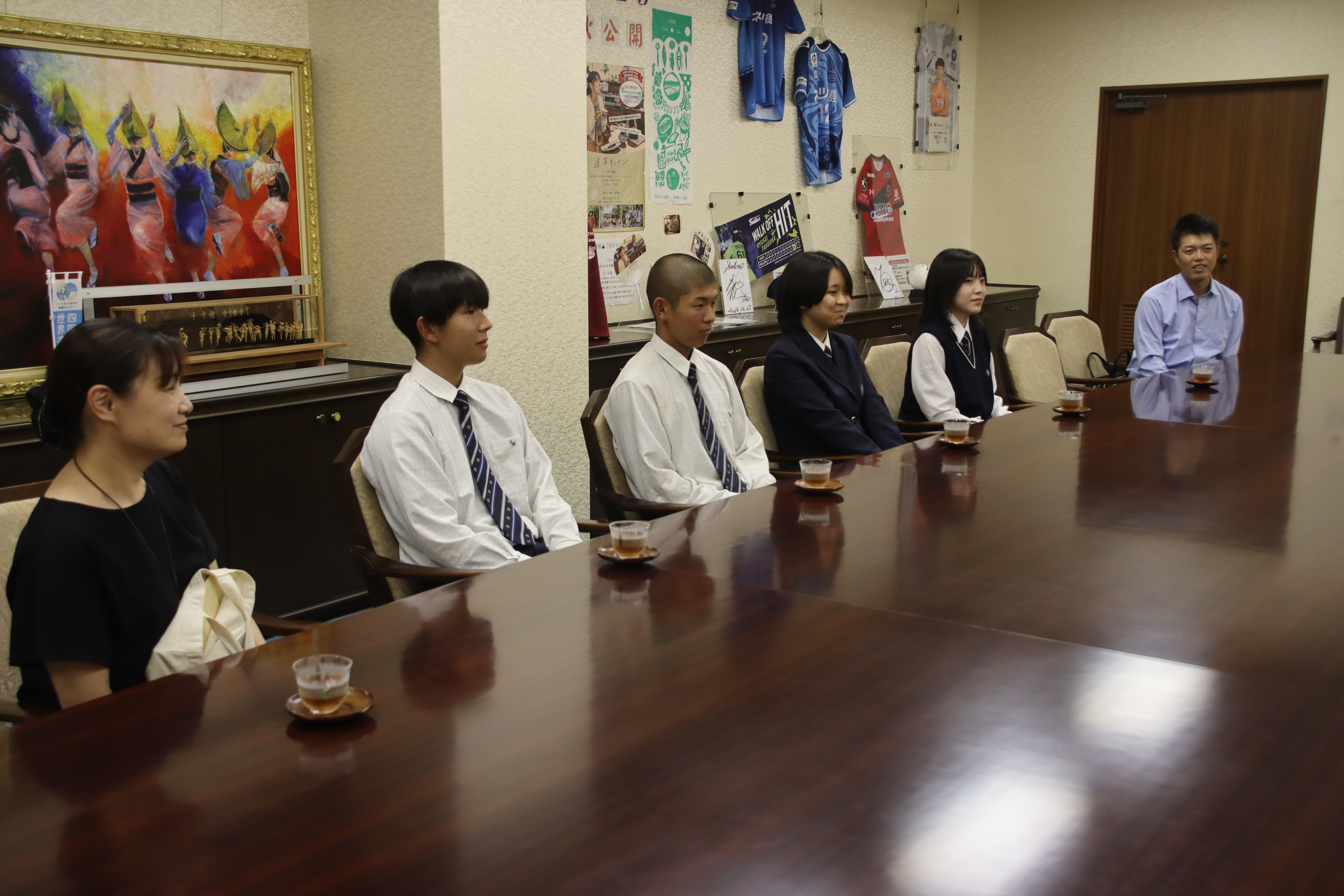 10月8日、川島高校の2年生8人が防災をテーマに制作したラジオ番組のCDを寄贈するため、市役所を訪れました。ラジオ番組のCDには、ペットと避難する際の備えについての「ペットと防災」と避難所運営を模擬体験できるカードゲーム・HUGを通して避難所で困った事例などを紹介する「HUGって何」の2本が収録されています。作成した生徒からは、「少しでもペットと避難する際の防災意識が向上してくれたら嬉しい」、「日頃から、事前に備えることが大切だ」との意見が述べられました |