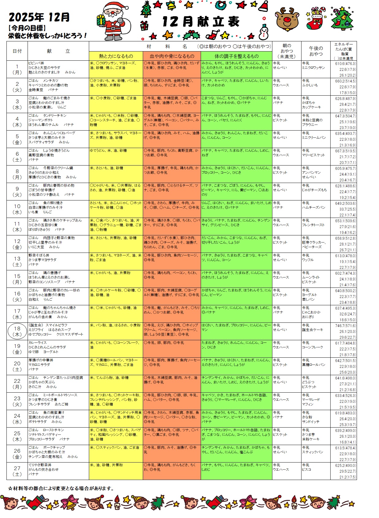 公開日 2025年12月01日 吉野川市公立認定こども園給食献立表(2025年12月) ※施設により、行事等の都合で献立の内容が変更または前後する場合があります。 関連ワード こども園 給食 献立 お問い合わせ 健康福祉部 こども未来局 こども未来課TEL:0883-22-2266FAX:0883-22-2245E-Mail:kosodate@yoshinogawa.i-tokushima.jp