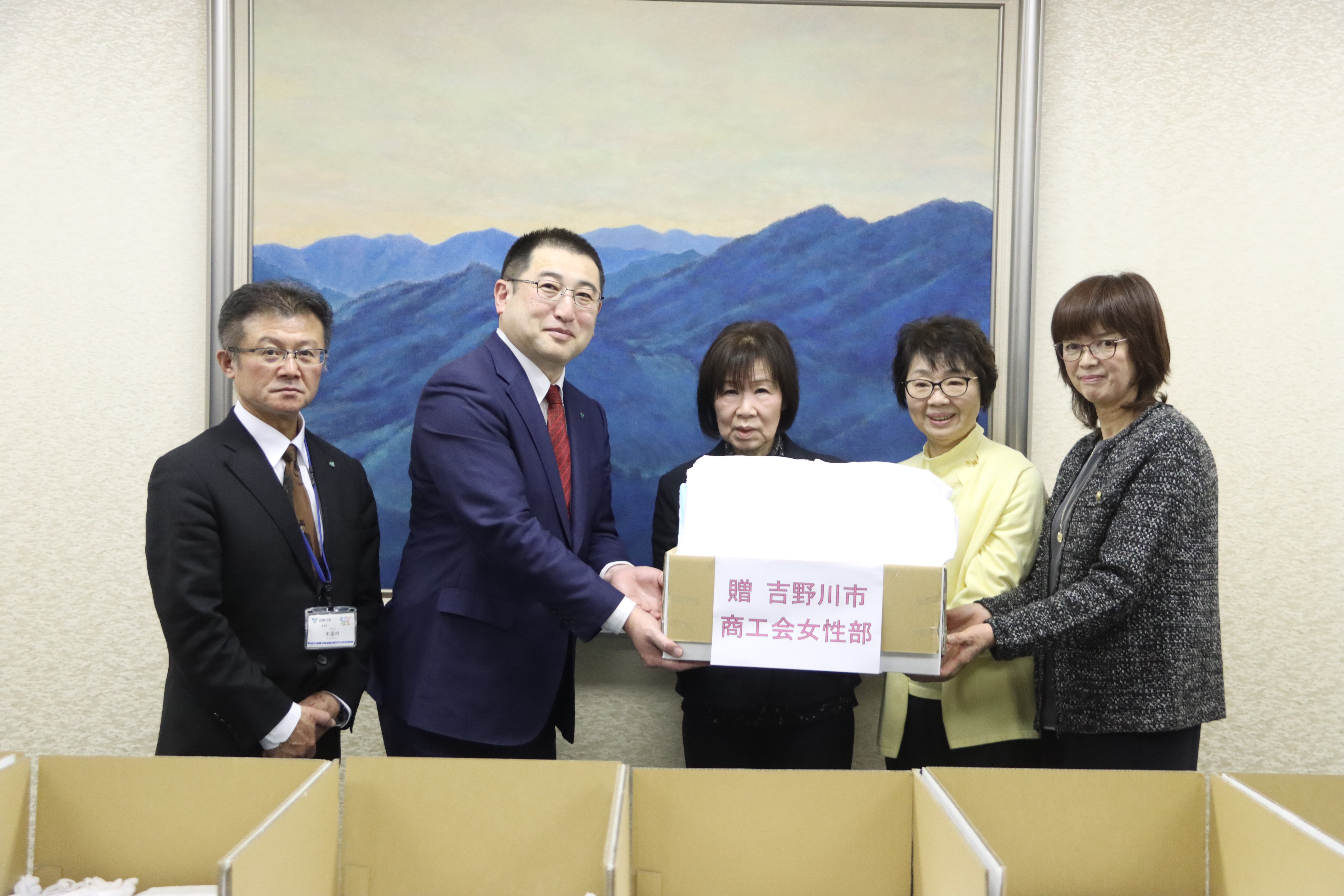 | 3月19日、吉野川市商工会女性部様から、雑巾481枚を寄贈いただきました。いただいた雑巾は、市内の小学校で有効に活用します。 |