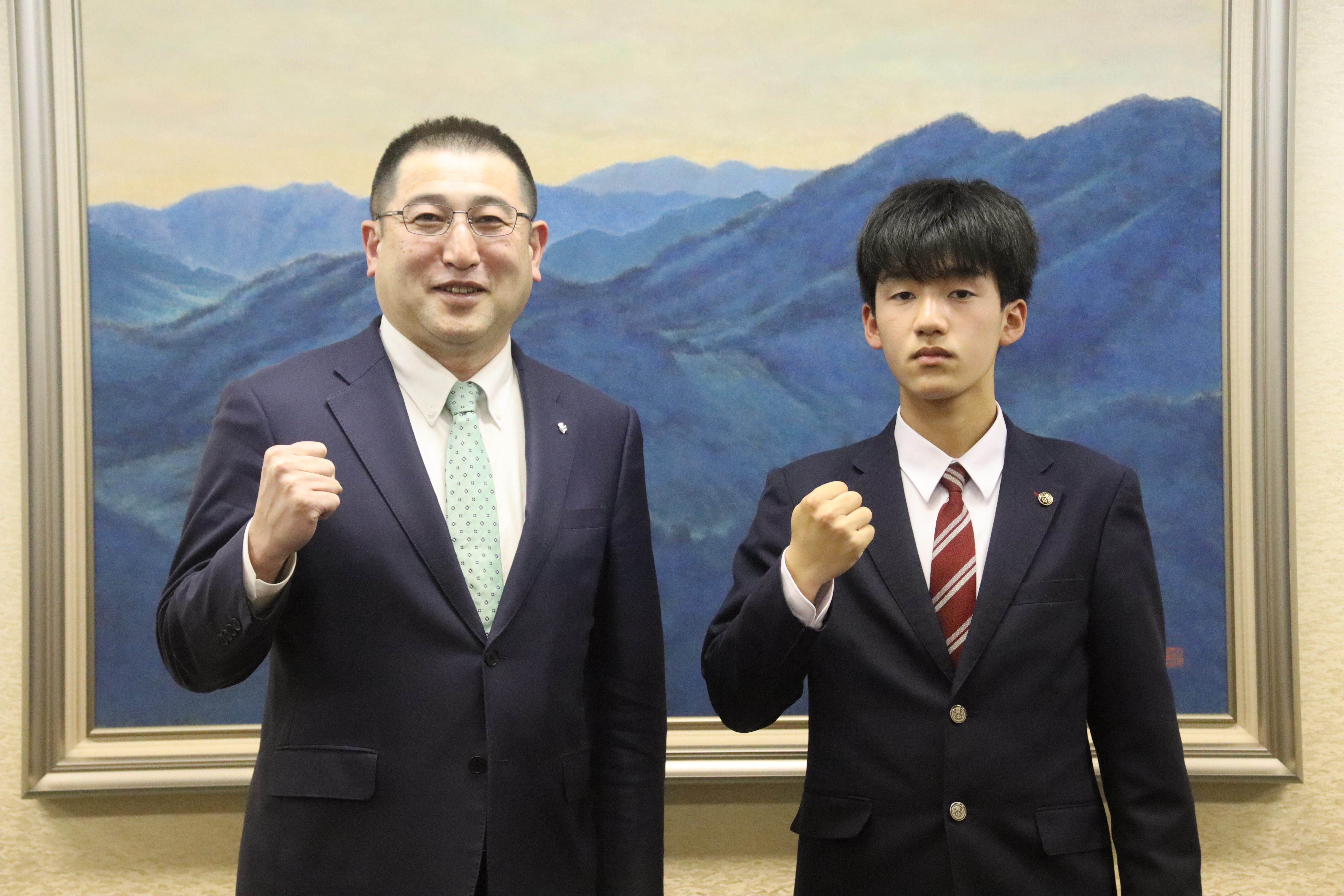 | 3月12日、吉野川市出身の阿部裕真さんが市役所に訪れ、「第37回都道府県対抗全日本中学生ソフトテニス大会」に出場する旨を市長に報告しました。阿部さんは徳島県代表としてシングル戦に出場します。阿部さんからは「出場するからには1試合でも多く勝てるように頑張りたい」と大会に向けて意気込みが語られました。 |