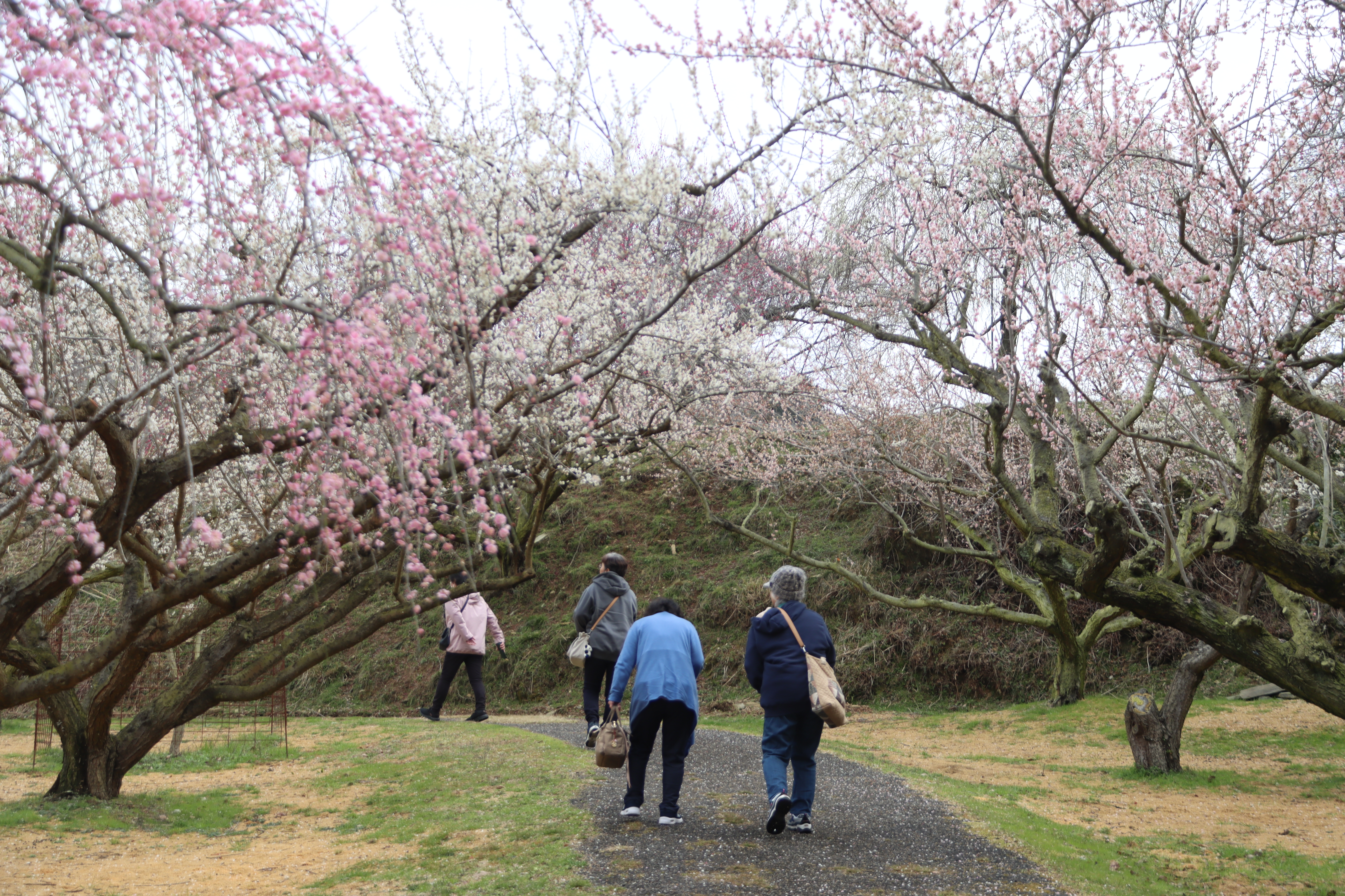 - 梅の花を楽しむ来場者たち
