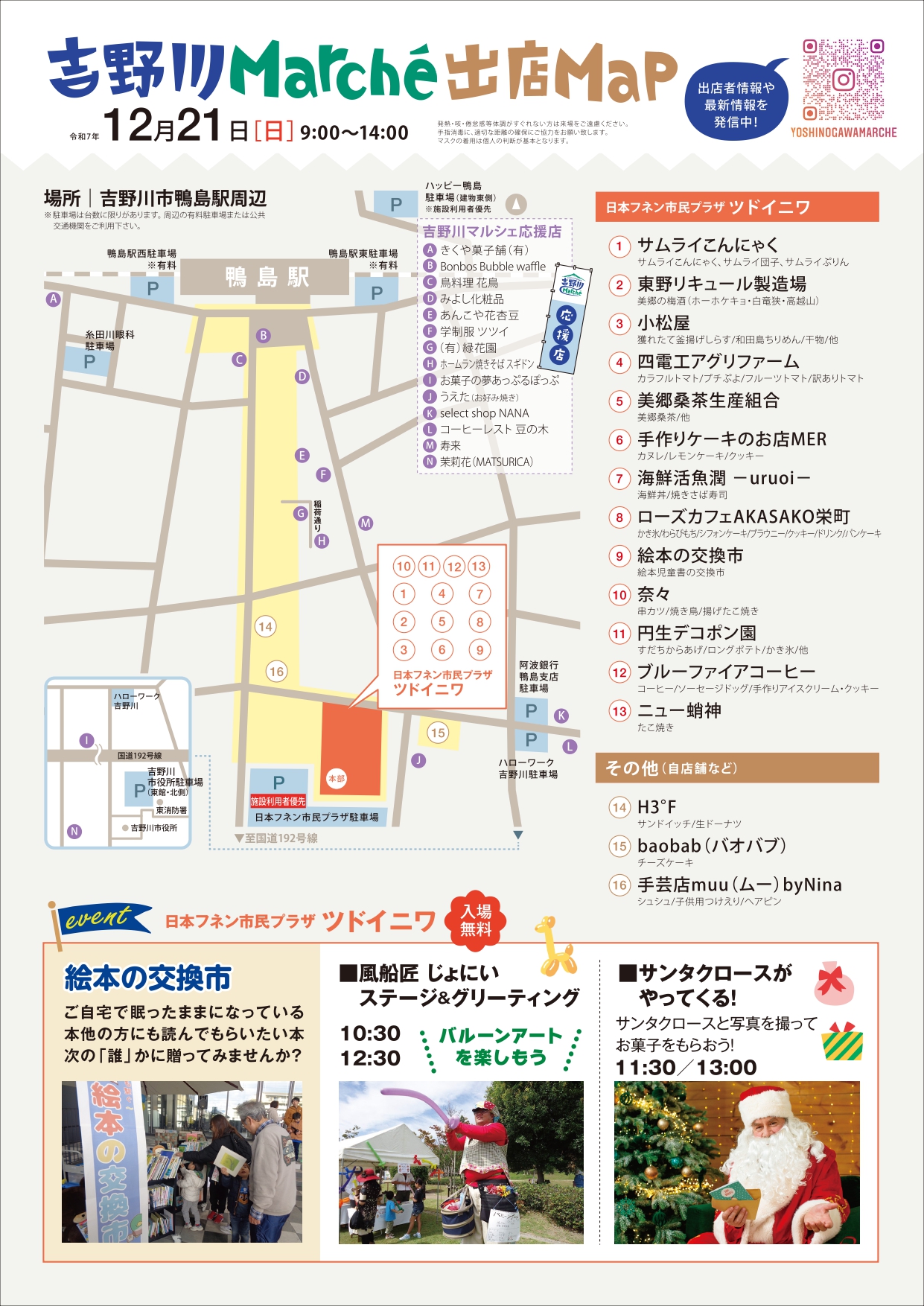 | 2025年04月20日(日) | 令和7年12月21日(日)第39回「吉野川マルシェ」開催! | |